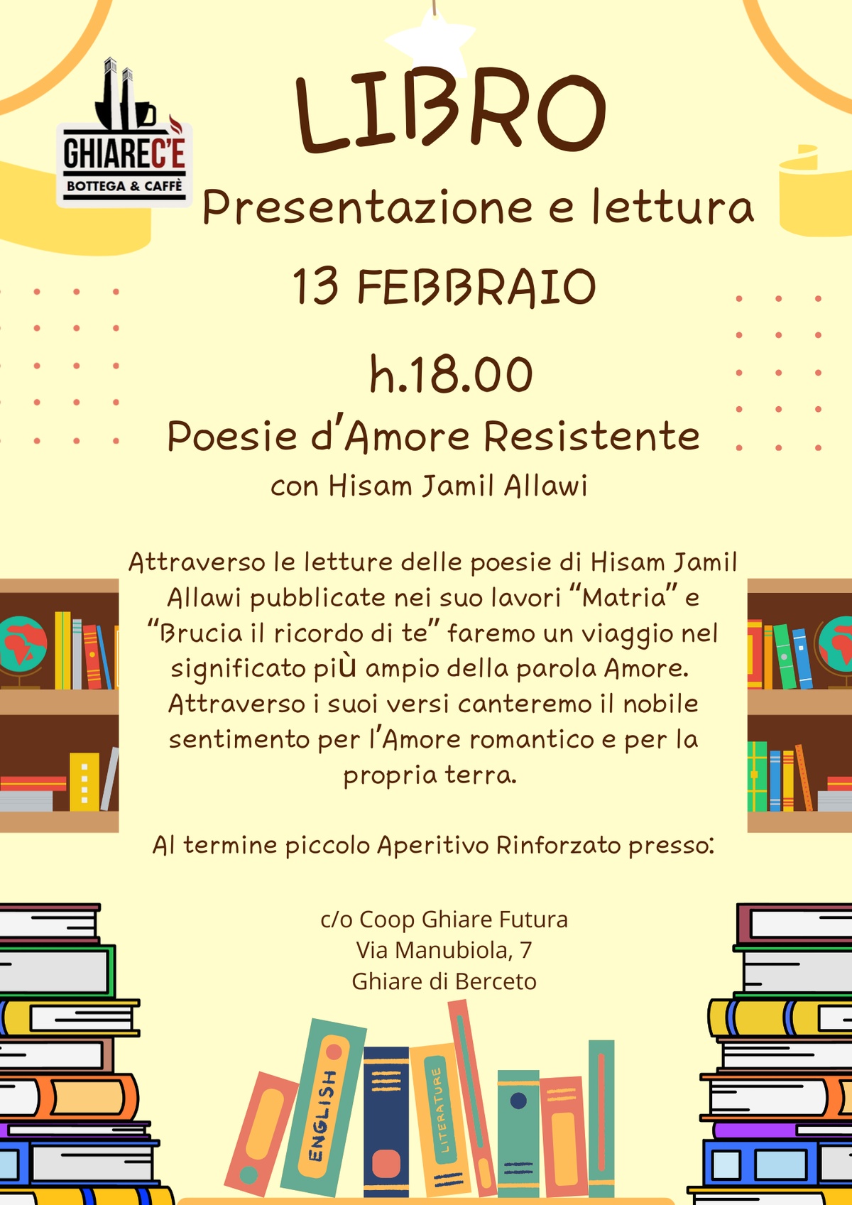 Attraverso le letture delle poesie di Hisam Jamil Allawi pubblicate nei suo lavori “Matria” e “Brucia il ricordo di te” faremo un viaggio nel significato più ampio della parola Amore.