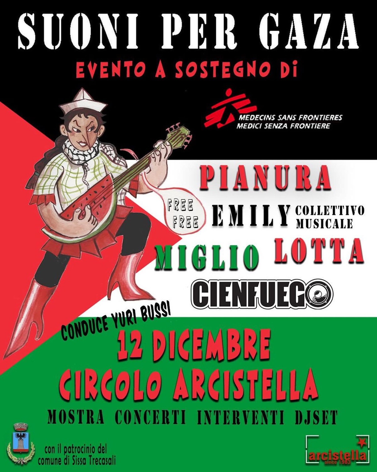 Una serata di musica, arte e solidarietà per sostenere Medici Senza Frontiere / Médecins Sans Frontières nel loro lavoro cruciale a Gaza.